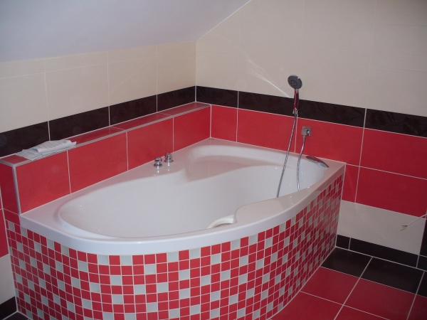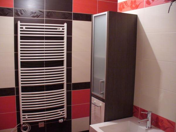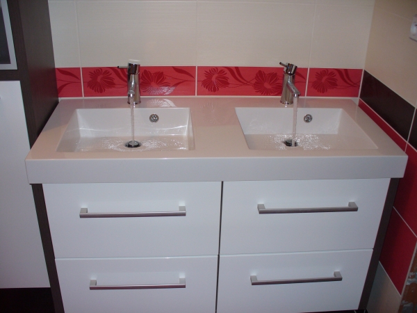 Bylo použito umyvadel a koupelnového nábytku od firmy INTEDOOR,vana RAVAK rosa 2.WC sedátko se spomalovacím systémem slowclose a desingové vodovodní baterie RHAPSODY.